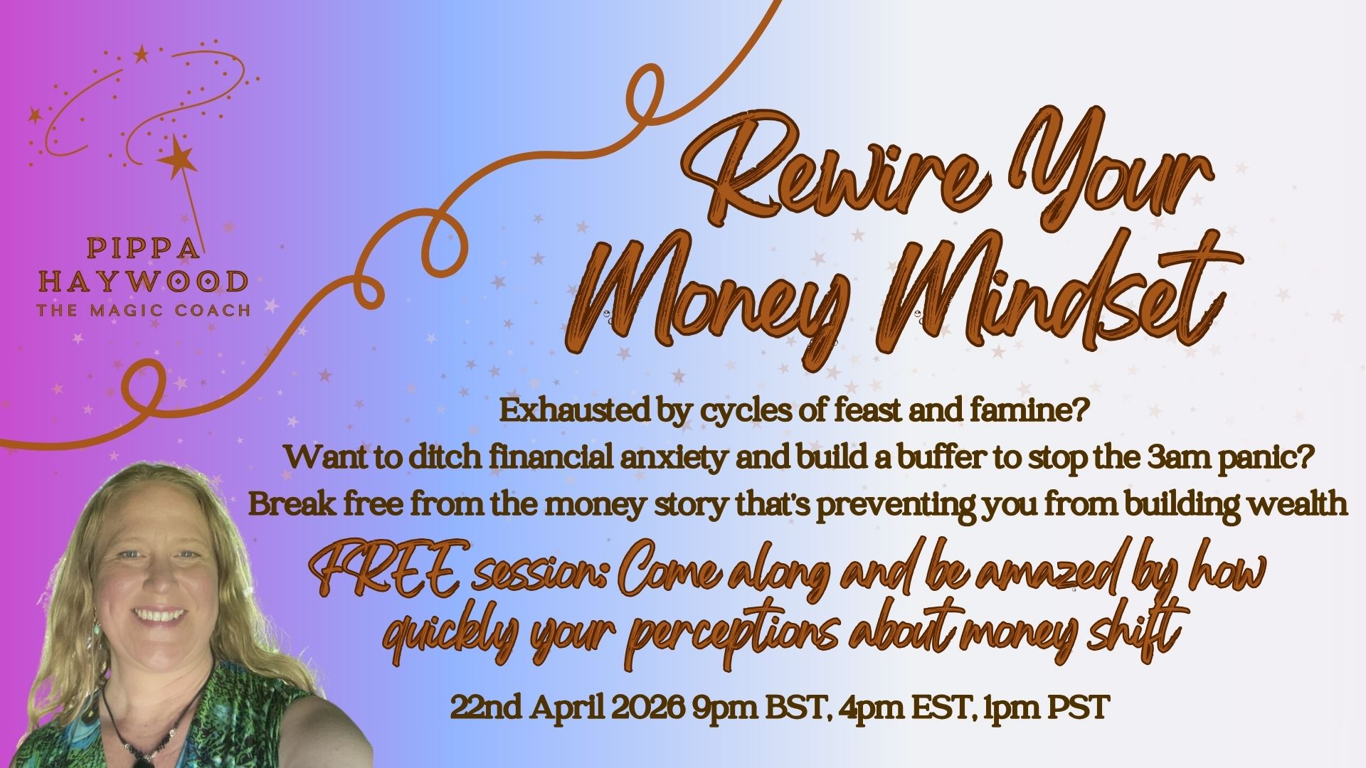 Whether you've attended this session with me, another session with me or whether you are a newbie you are most welcome to come along and experience the magic of this Rewire Your Money Mindset session.